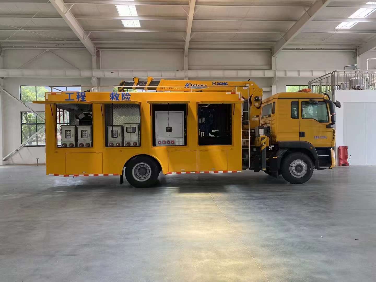 上裝配置  豪沃帶吊救險(xiǎn)車配徐工5噸4節(jié)直臂吊機(jī),常用功率200KW發(fā)電機(jī)組,可以選配8臺500方便攜泵,。或1臺1000方自吸泵加6臺500方便攜泵,總排水量4000方/小時(shí)。安裝升降照明系統(tǒng)及液壓支撐系統(tǒng),整車智能系統(tǒng)…