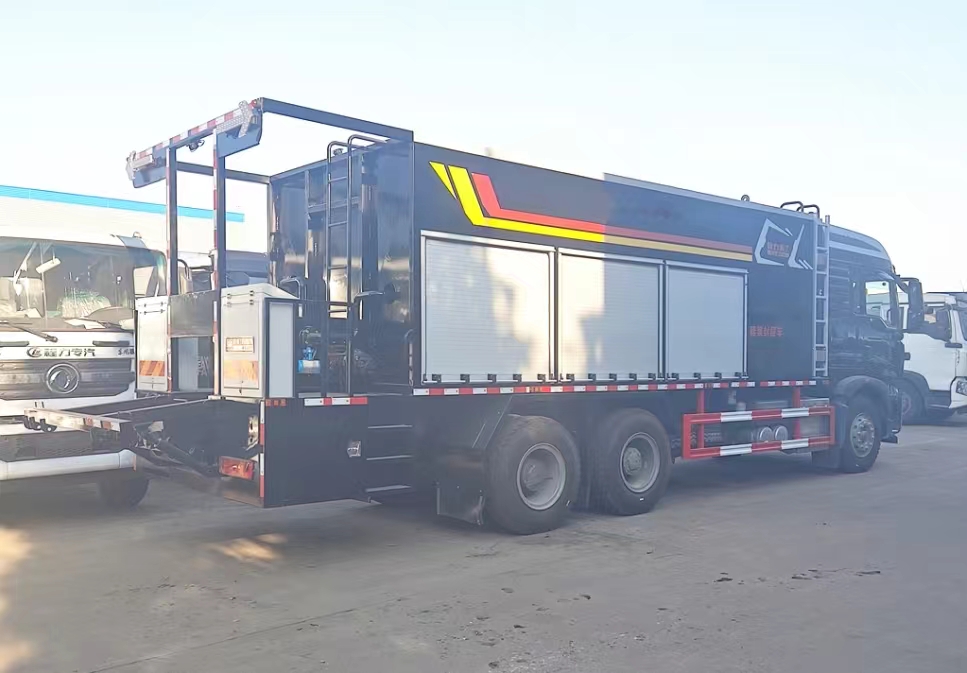 產品概況 CLW5251TFCZ6型稀漿封層車型稀漿封層車可拌和攤鋪普通稀漿封層材料,該產品主要面對高等級公路的微表處和下封層以及普通二、三級公路和市政道路的下封層施工,屬于稀漿封層車中的中高端產品CLW5251TFCZ6型稀漿封層車的主要特點:1. 后置遠程速度控制裝置:該裝置使得施工更加流暢,施工時車速由后臺操作人員根據攤鋪相中混合料的情況隨時調整車速,減少了在施工嘈雜環境中因操作手與司機的不順暢溝通而產生的施工質量問題。2.乳化瀝青箱及水箱均采用耐腐蝕復合材料處理:大大減小了水及乳化瀝青對箱體的腐蝕,延長了使用壽命。3.全液壓驅動,各系統獨立控制:無動力擾動現象,確保個系統的平穩運轉。4.無死角的雙軸強力攪拌箱:保證拌合料的均勻性,并且清洗無死角。5. 控制系統:系統采用人機化集中控制,操作人員可以在后平臺上完成所有操作。優選工程機械專用控制器,手動、自動切換,智能顯示流量,操作方便、可調。6. 全數字的計量系統。采用流量計實時顯示,能精確的計量瀝青、水以及添加劑的用量。7. 底盤帶電動門窗、空調、臥鋪、ABS;操作方便、駕乘舒適。8.折疊式鋁合金爬梯,既美觀,又方便。9.鋁合金卷簾門,施工時打開,不遮擋駕駛員視線和影響兩側車輛通行。10. 雙層料倉擋板,防止漏料,保證施工質量。