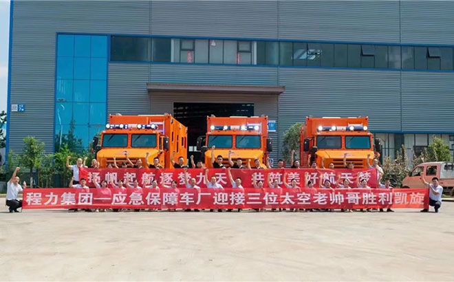 程力制造的航空員保障車迎接神州十二號航天英雄凱旋