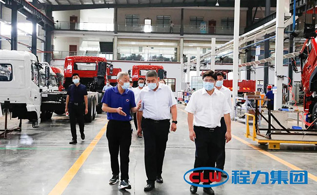 代表團參觀的第三個車間,來到了程力商用車生產線,程國強書記向首長和領導嘉賓如數家珍地詳細介紹了程力自主品牌“程力威”商用車的底盤及整車的研發生產與銷售情況,代表團對程力商用車涵蓋輕卡、中卡、中卡全系底盤整車的產能產量表示了認可和肯定,愿意加強進一步的商務合作。