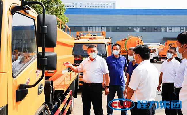 庚即,代表團一行饒有興趣的參觀了程力高端抑塵車專業廠的疫情消毒霧炮車,程國強書記與執行總經理朱武分別向代表團介紹了程力自己研發的無副發動機的智能化多功能消毒防疫車產品性能和市場銷售情況。